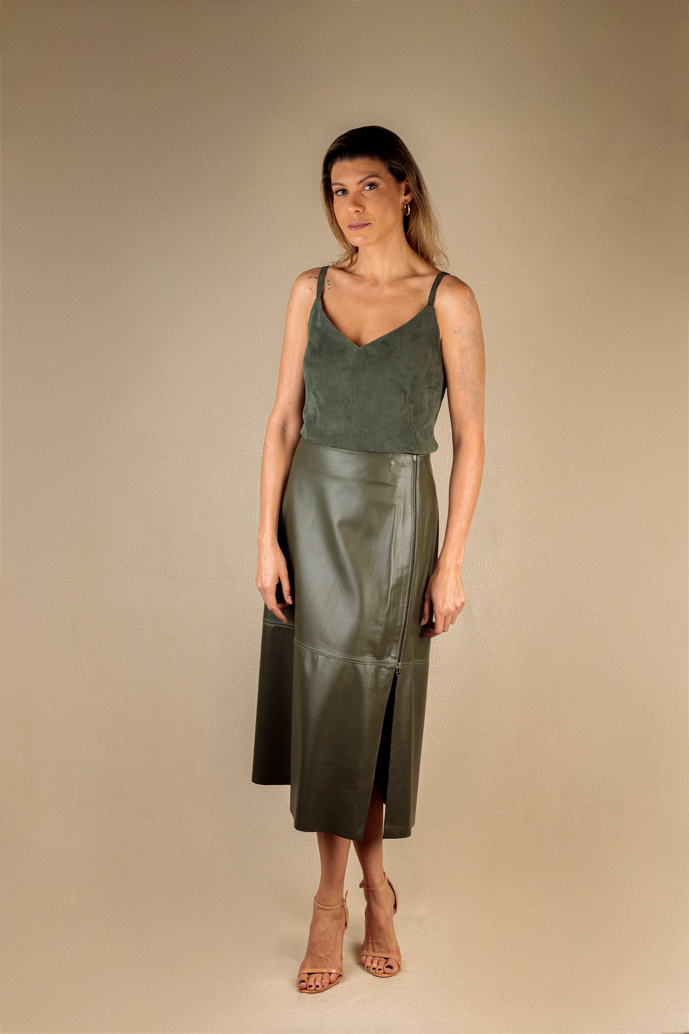 Seja o primeiro a avaliar “Saia Midi Verde Militar com Zíper e Fenda”