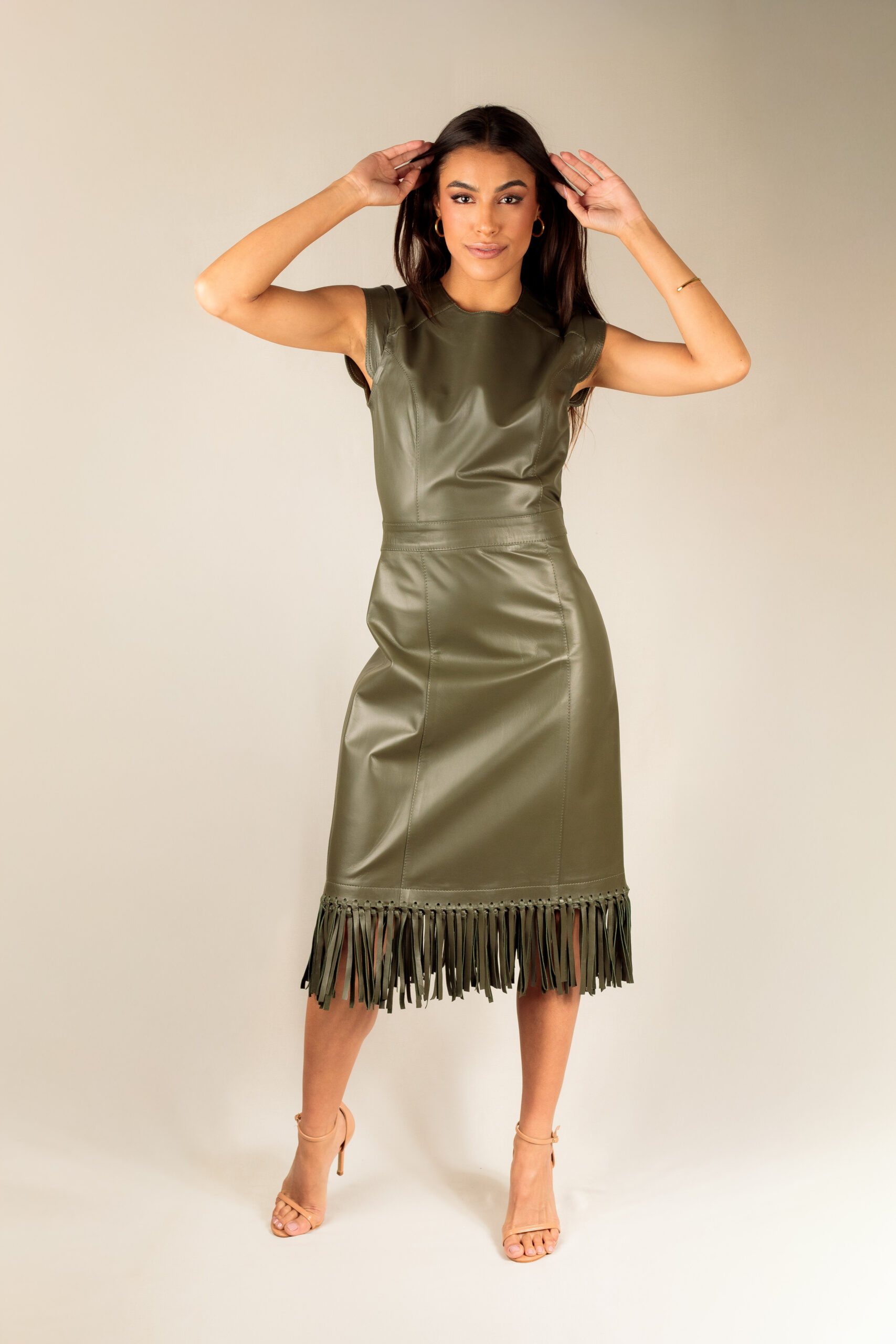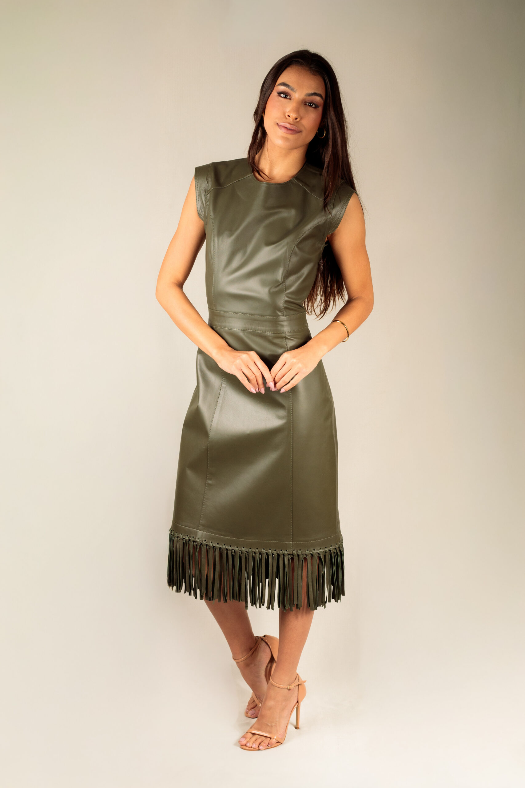 Seja o primeiro a avaliar “Vestido Midi com Franja – Cor Verde Militar”